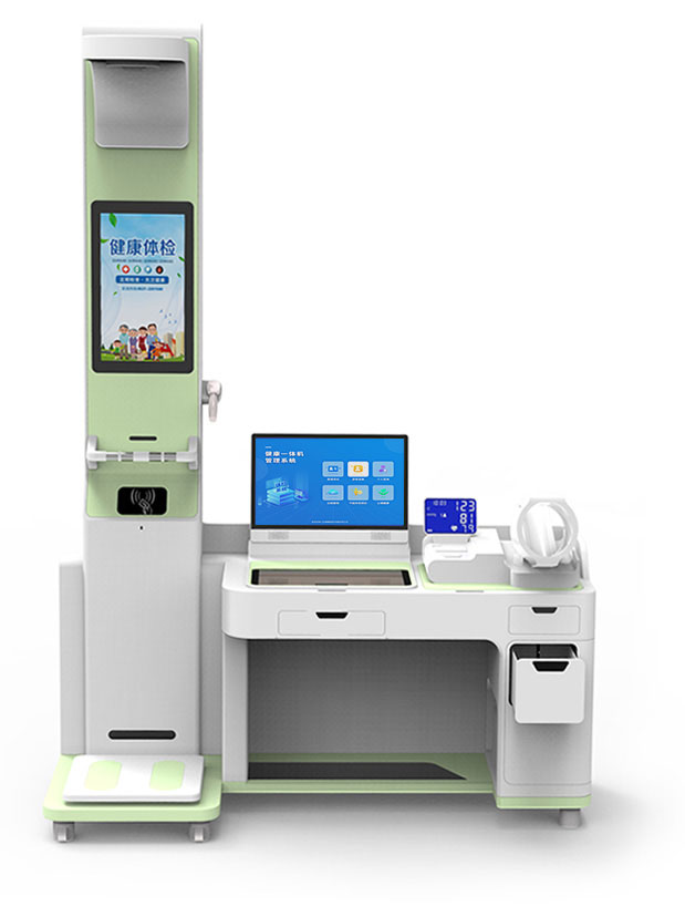 涵盖基本公卫体检项目,心电检测设备隐藏式设计, 整体弧面造型,人体工程学设计,增强用户体验感。